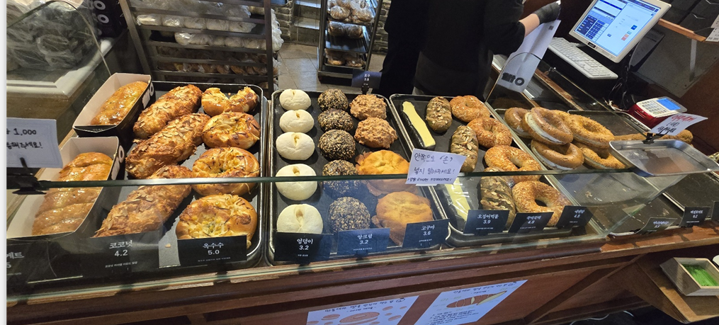 • 대표 메뉴로는 마늘 바게트, 어니언 베이글, 바질토마토, 옥수수, 엉덩이, 오징어 먹물 등이 있습니다.
