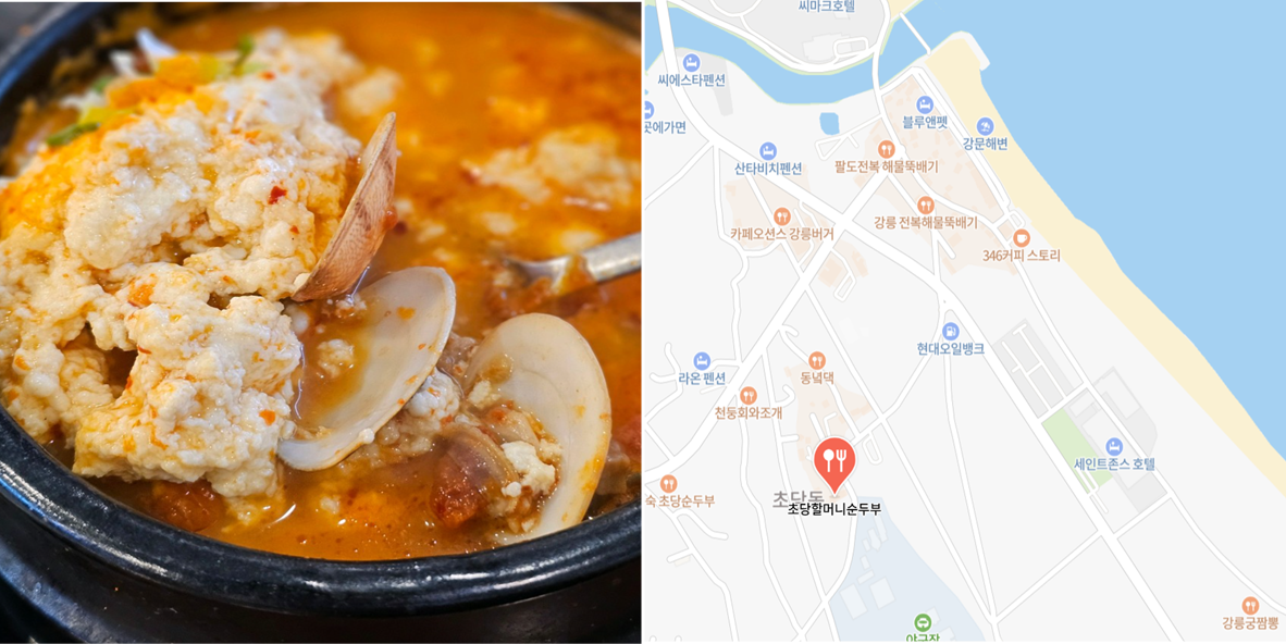 - 특징: 초당동을 대표하는 순두부 전문점(메뉴는 초당순두부, 얼큰째순두부, 모두부 등)