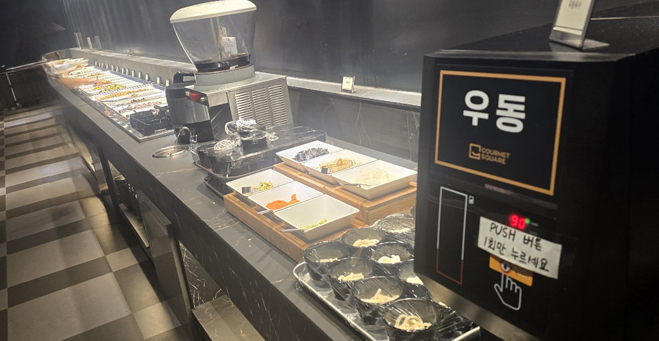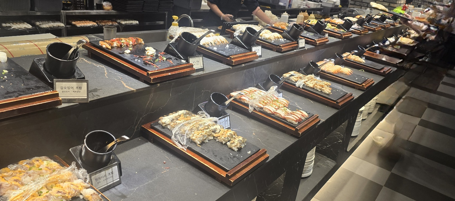 2024년 10월에 새롭게 단장한 이곳은 초밥 뷔페뿐 아니라 중식, 양식, 분식 등 다양한 메뉴를 한자리에서