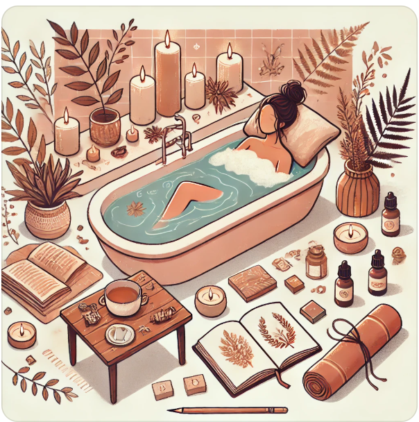 - 욕조에 따뜻한 물을 채우고 아로마 오일(라벤더, 로즈마리 등)을 몇 방울 떨어뜨려 보세요.