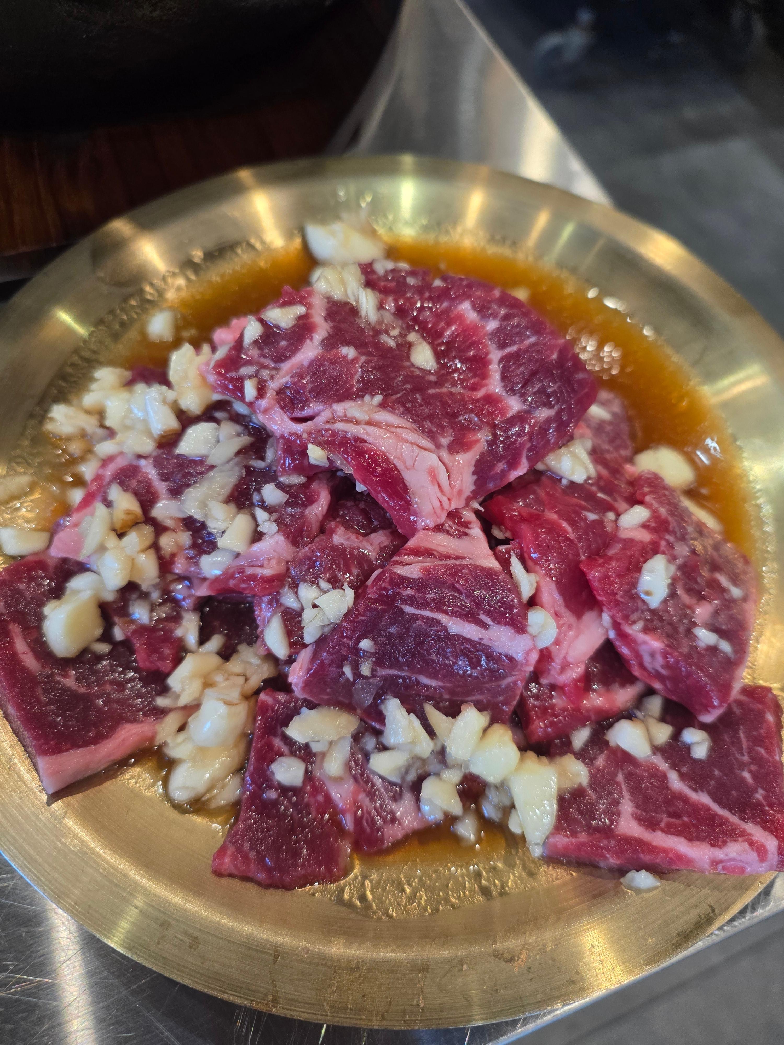→ 두툼한 살치살에 마늘이 듬뿍!