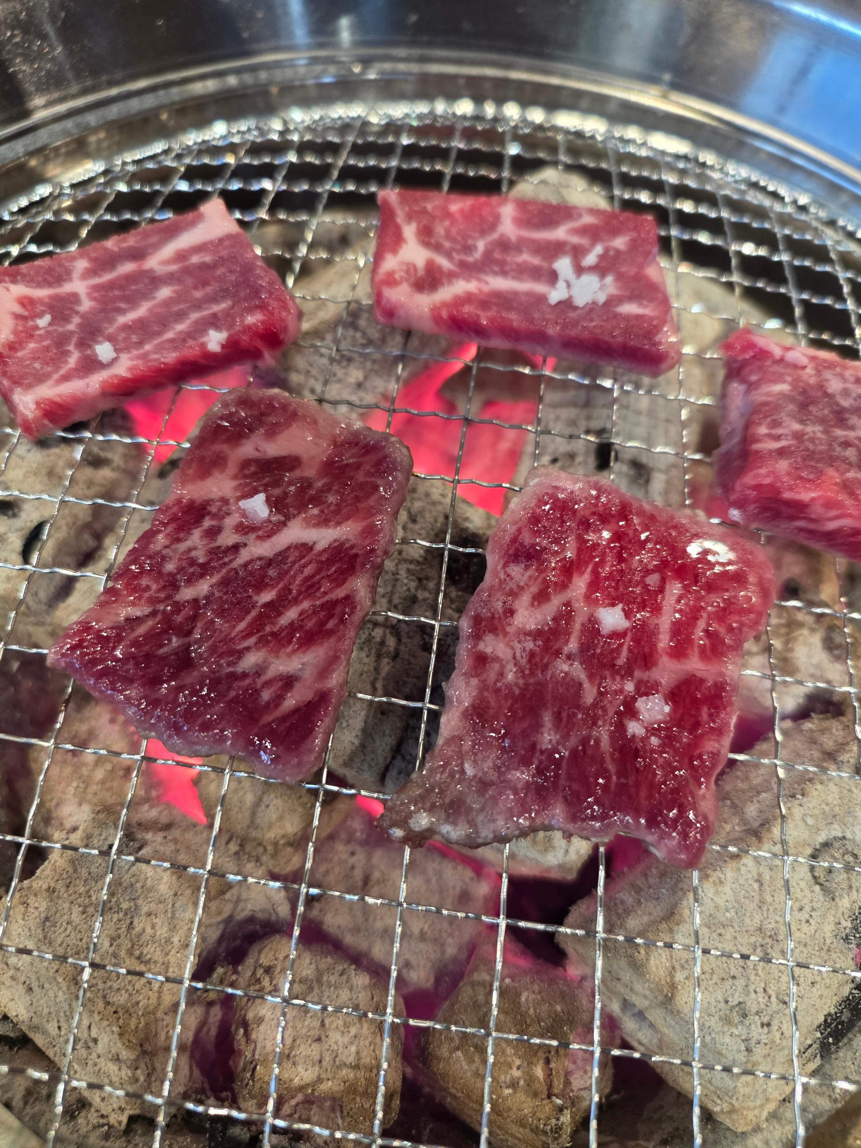 → 불판에 올리니 은은한 마늘향이 고기에 배어 고소함이 확 살았음 😋