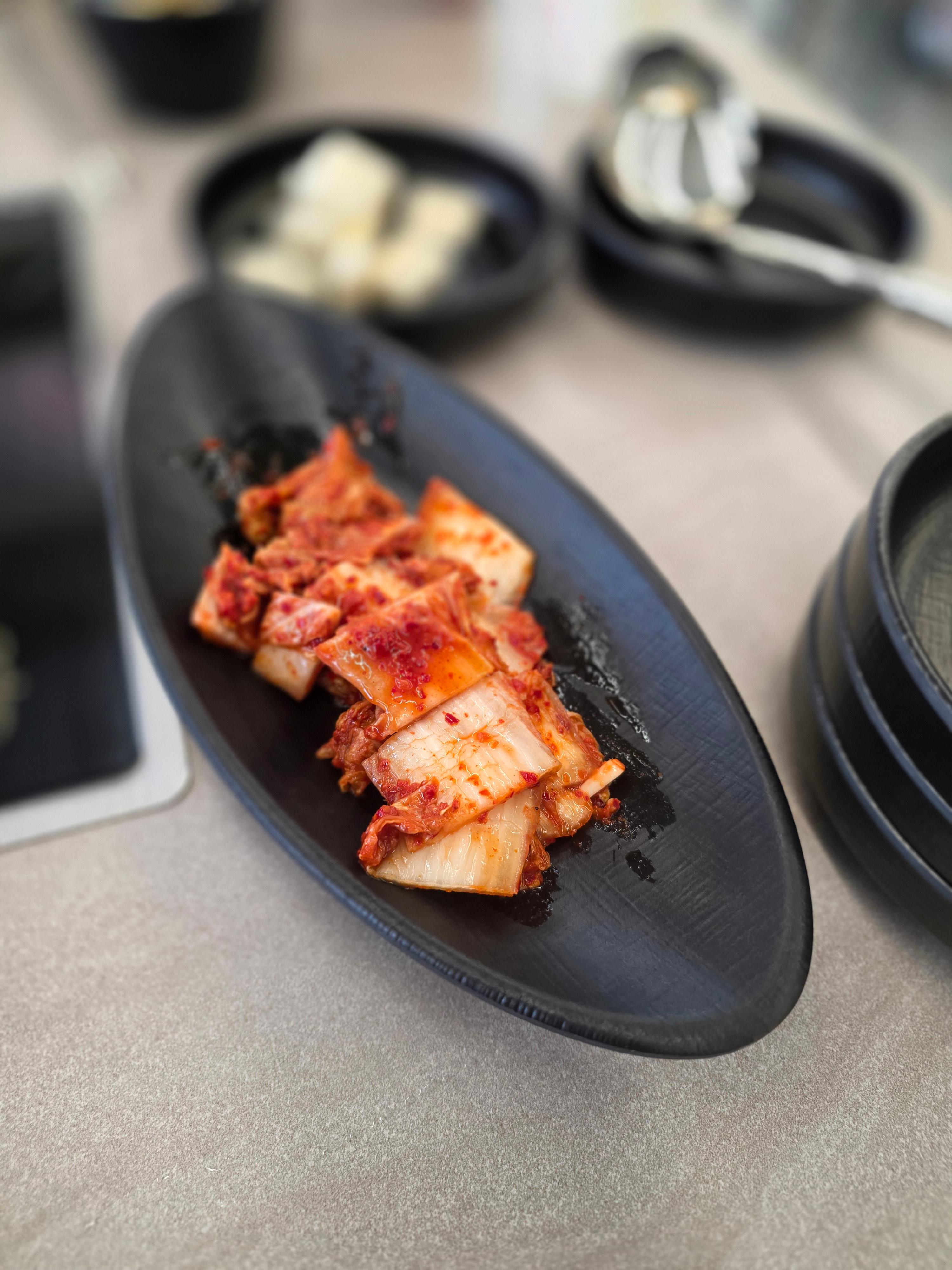 기본찬으로 정갈한 김치와 보리밥이 먼저 제공돼요.
