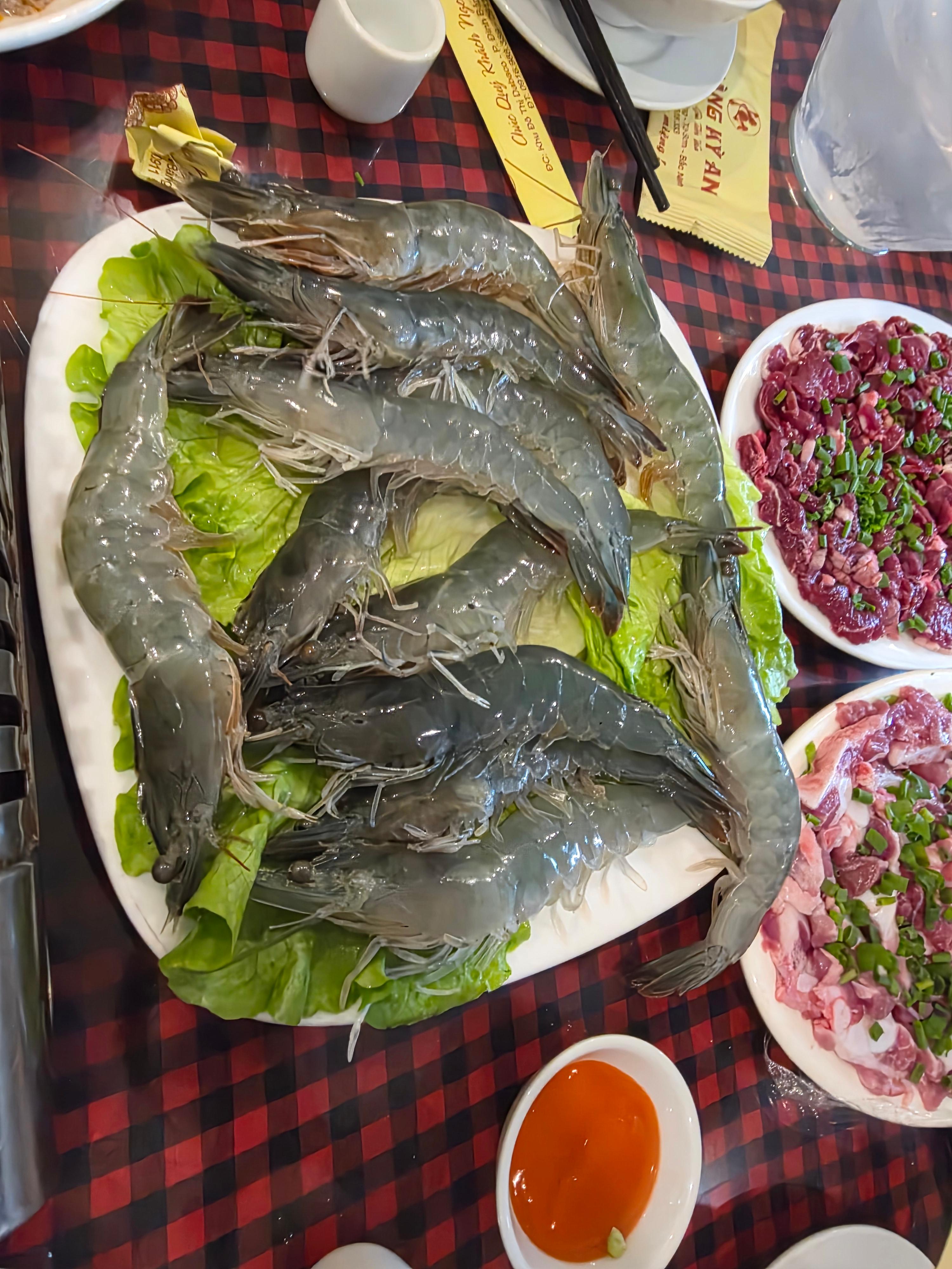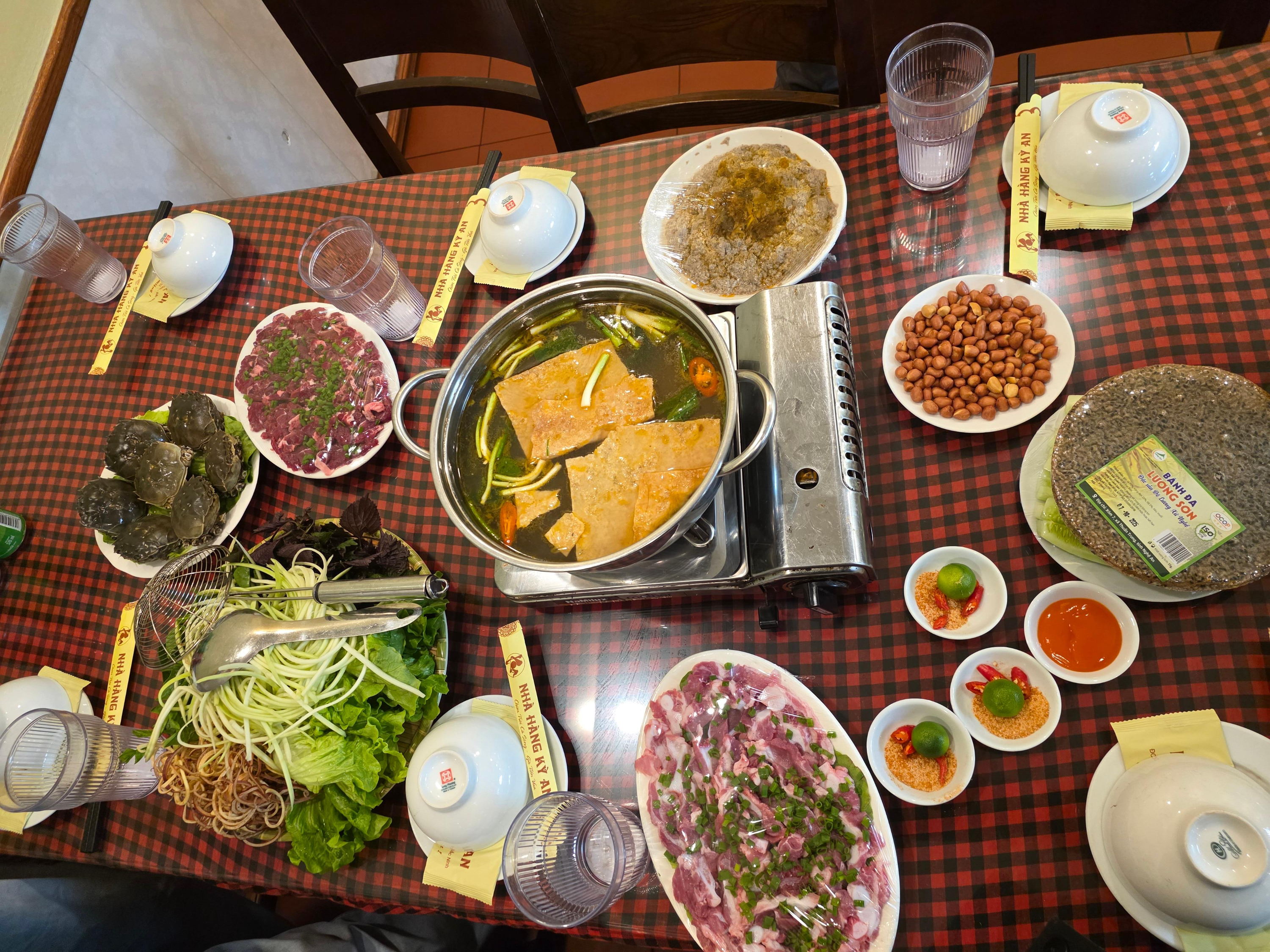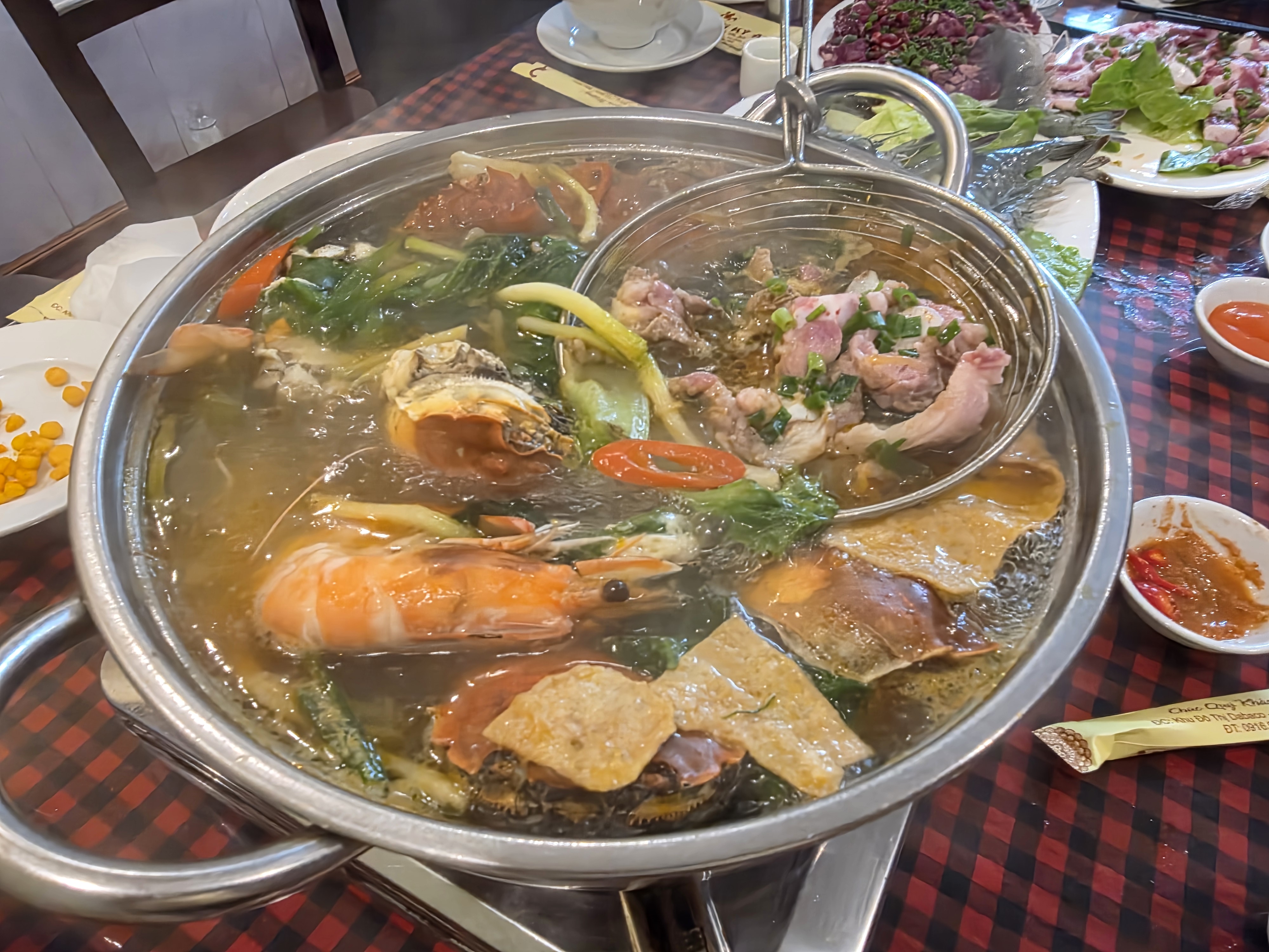 - 새우, 물소 고기, 민물게, 각종 채소 넣은 로컬식 샤브샤브