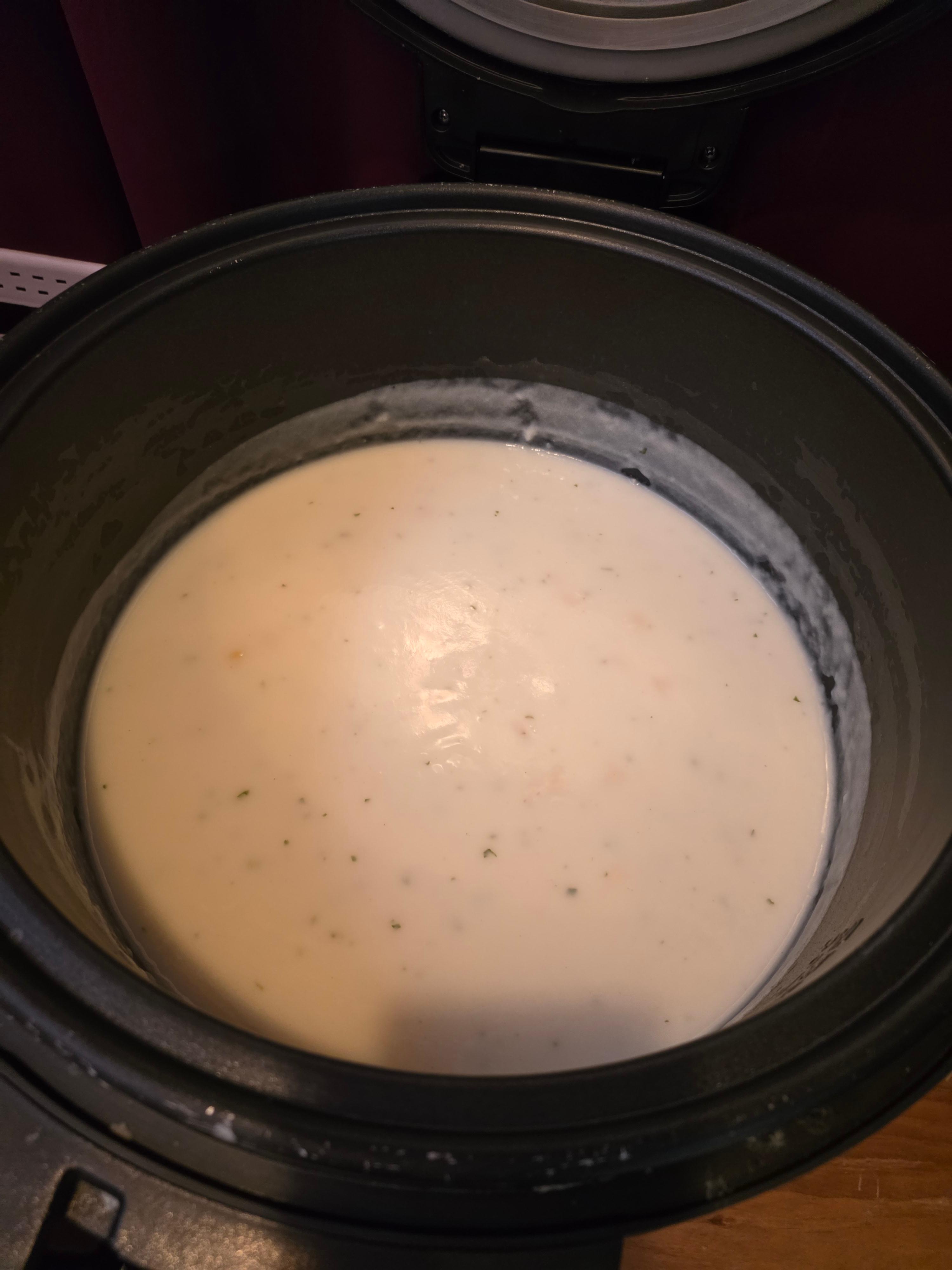 따뜻한 스프: 밥솥에 가득 들어있어 눈치 안 보고 리필 가능! (후추 톡톡 필수인 거 아시죠?)