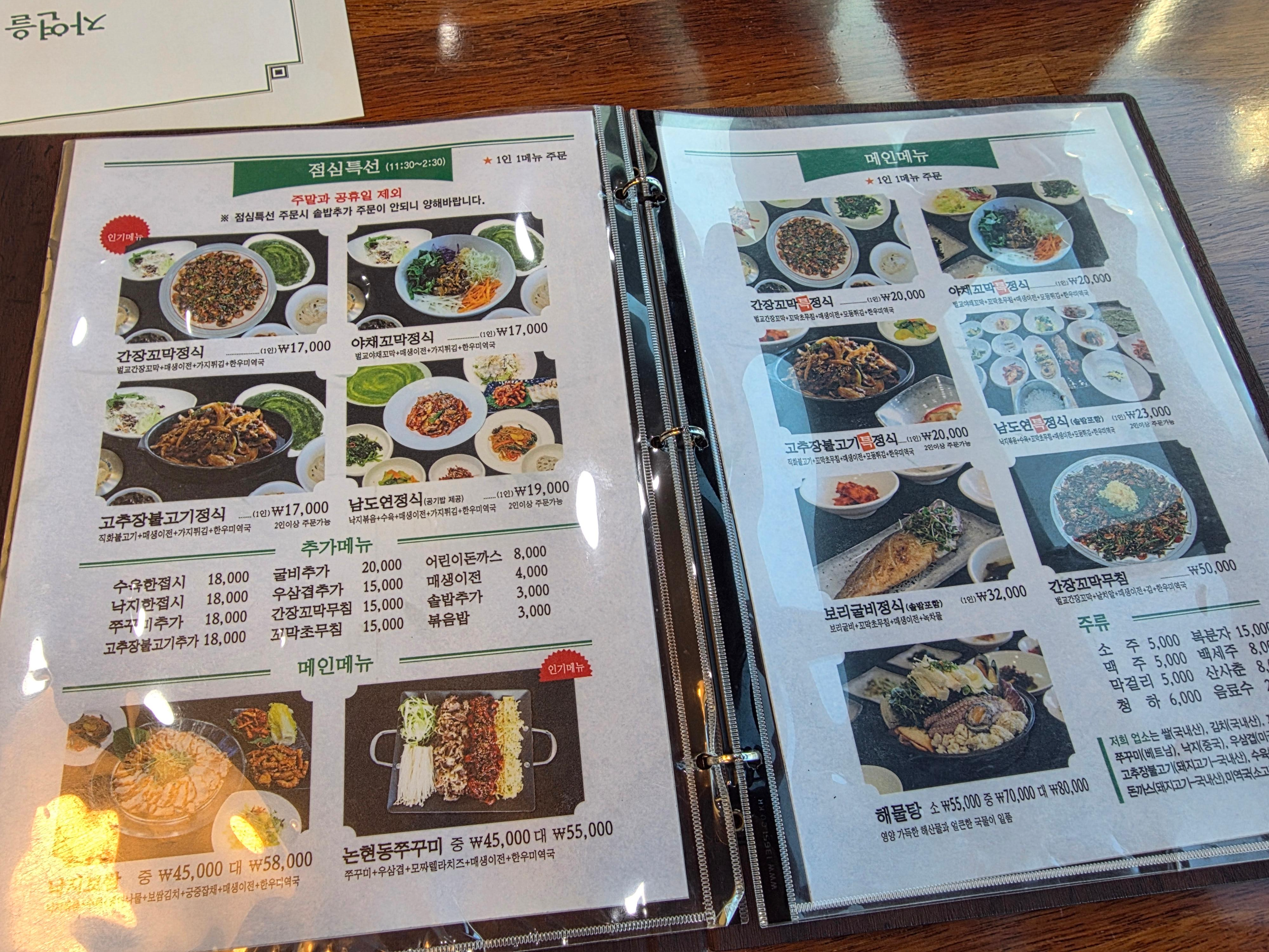 • 점심특선 외에도 한상·코스 다양