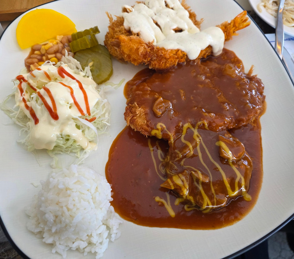 바삭한 수제 돈까스, 두툼한 함박스테이크, 부드러운 생선까스, 그리고 바삭한 새우까스까지