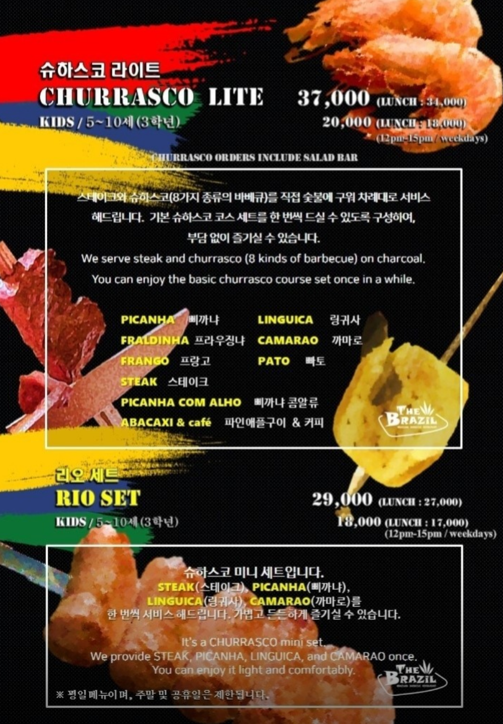 | 리오 세트 (샐러드바) | 29,000원 | 4가지 슈하스코 + 샐러드바 |