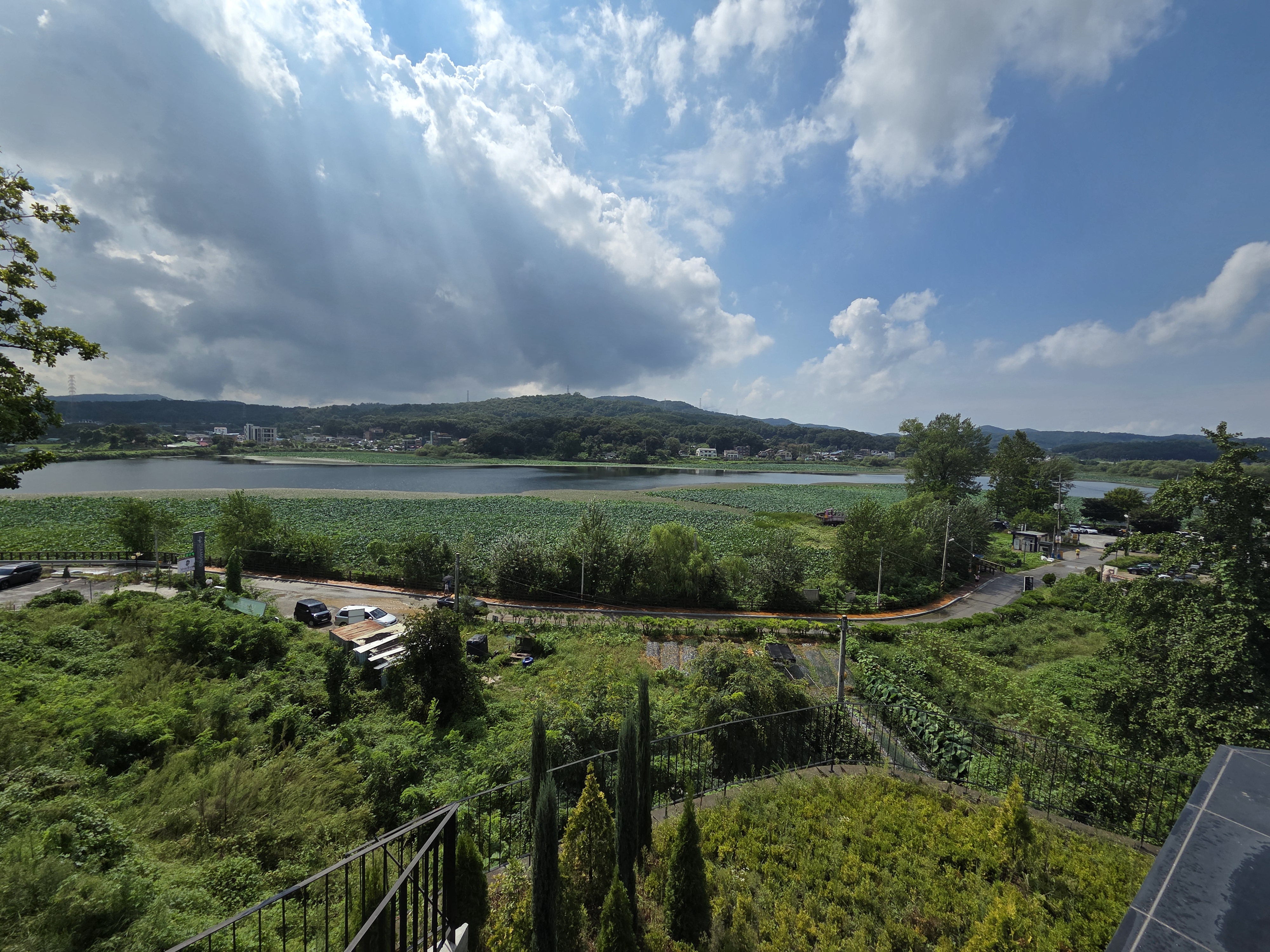전체가 유리창으로 되어 있어 저수지의 연꽃뷰가 펼쳐지고,