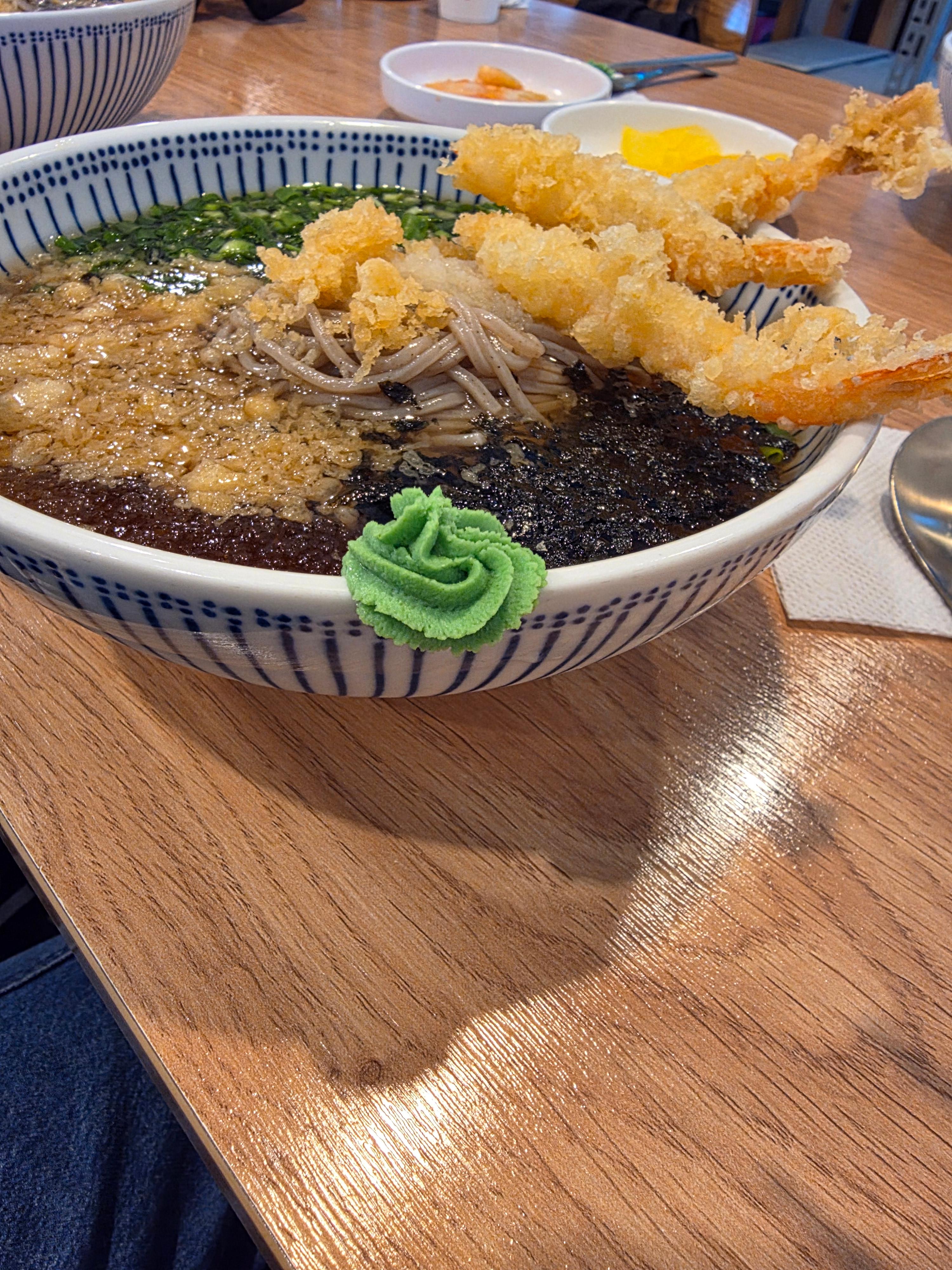 탱글한 새우튀김이 국물 위에 쫘악 올라가 있어서 그냥 보기만 해도 맛있음.