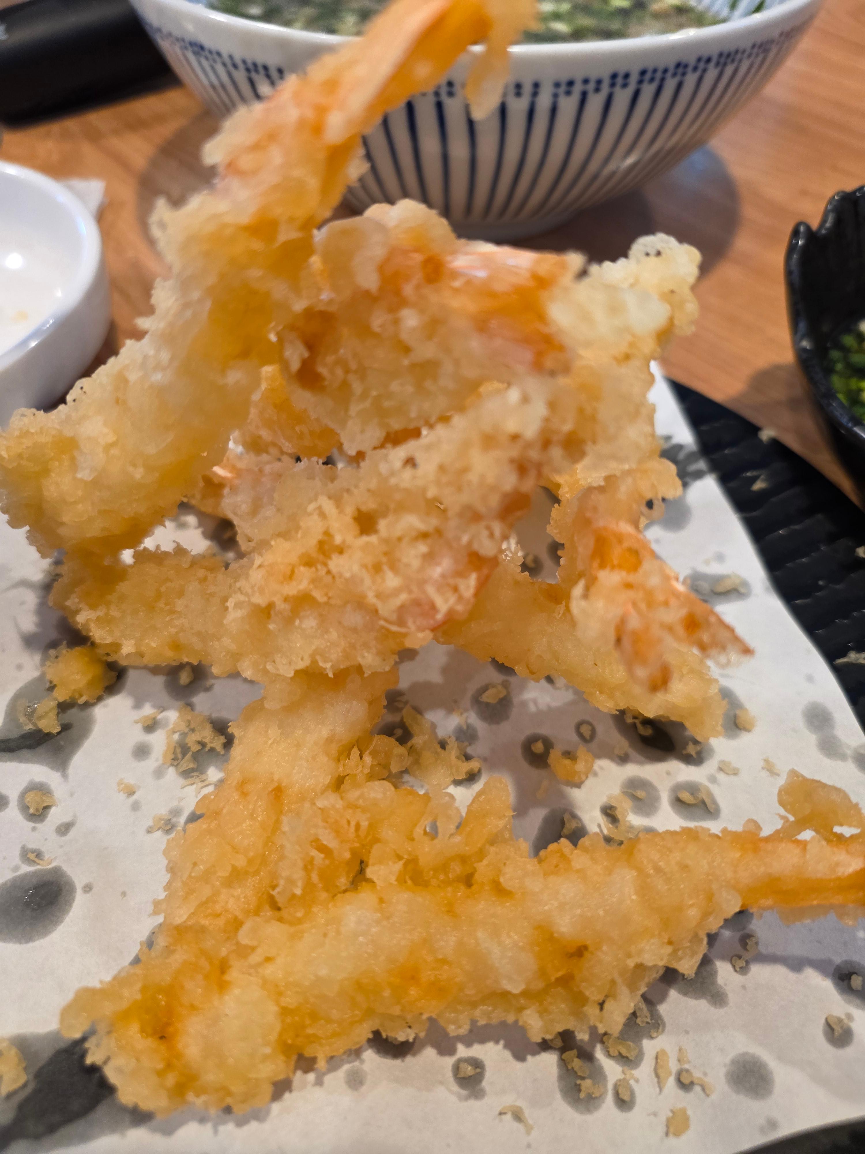 탱글한 새우튀김이 국물 위에 쫘악 올라가 있어서 그냥 보기만 해도 맛있음.