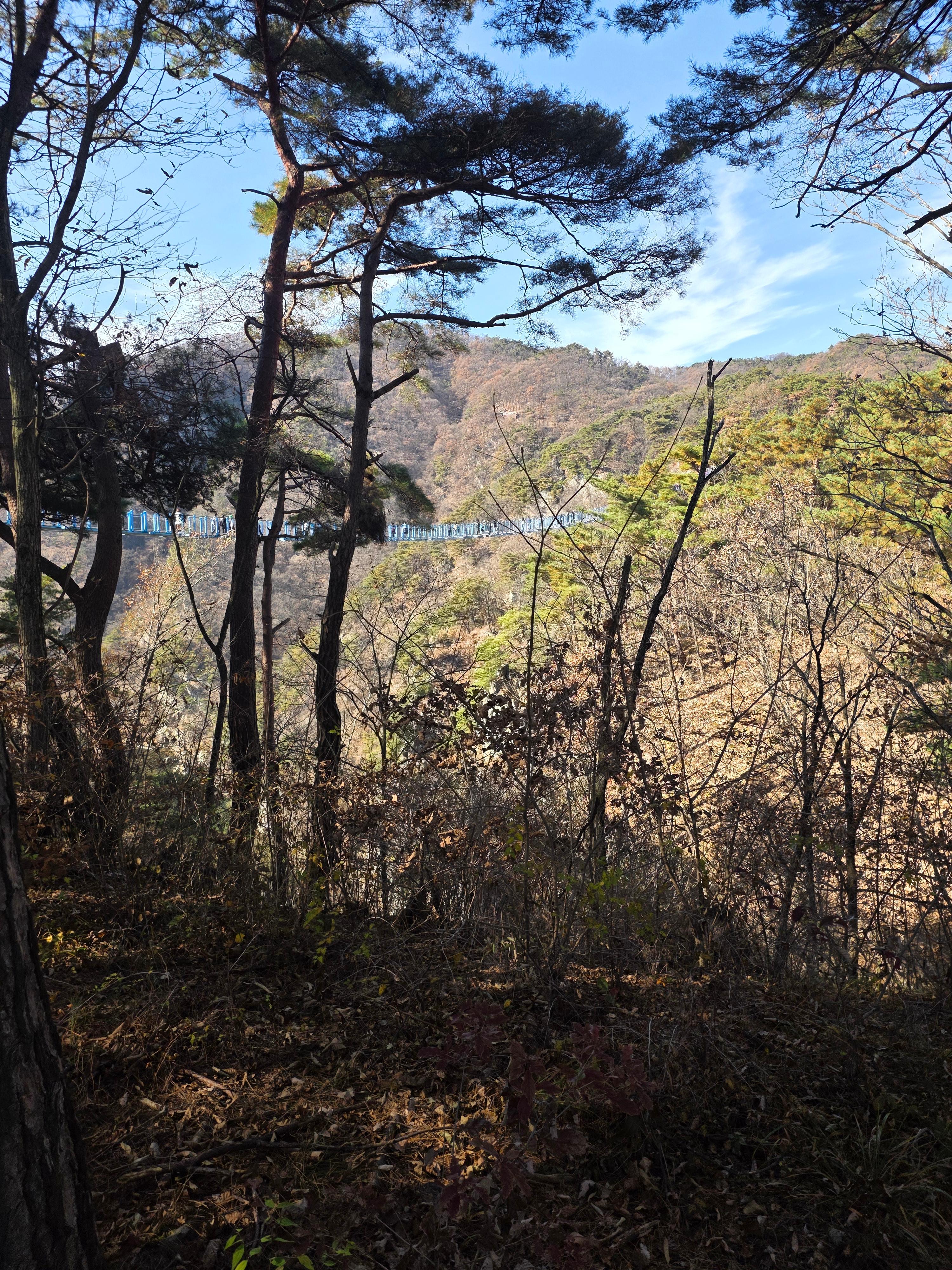 - 양쪽 절벽 사이로 길게 이어진 파란 다리