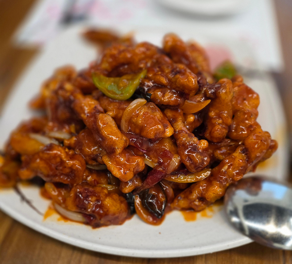 고기 튀김옷은 바삭하고 소스는 매콤달콤한 사천 스타일.