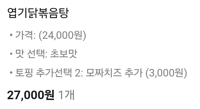 📍메뉴: 엽기닭볶음탕 (초보맛)