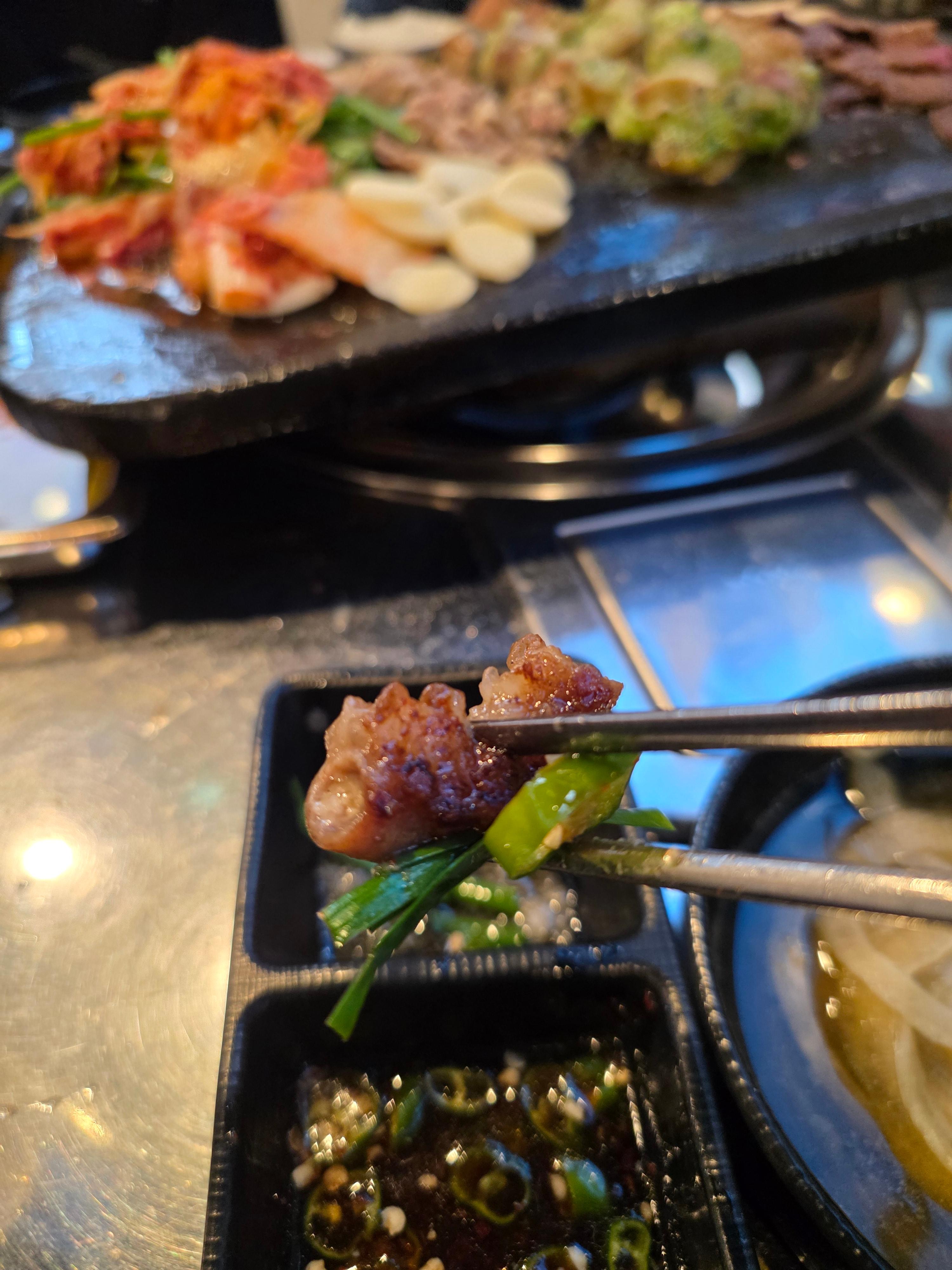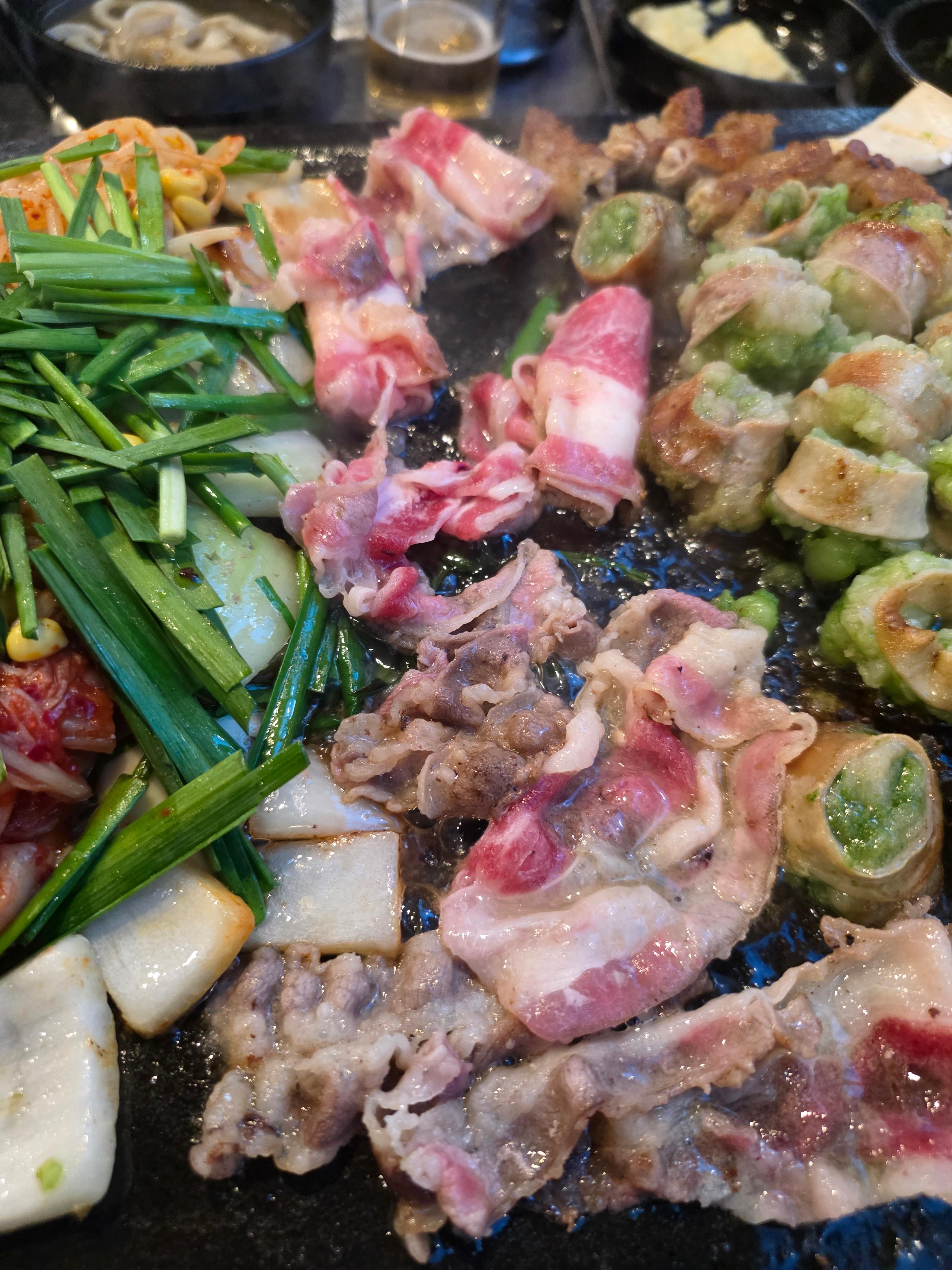 곁들여진 부추와 양파, 콩나무, 김치까지 더해져 풍미가 배가됩니다.