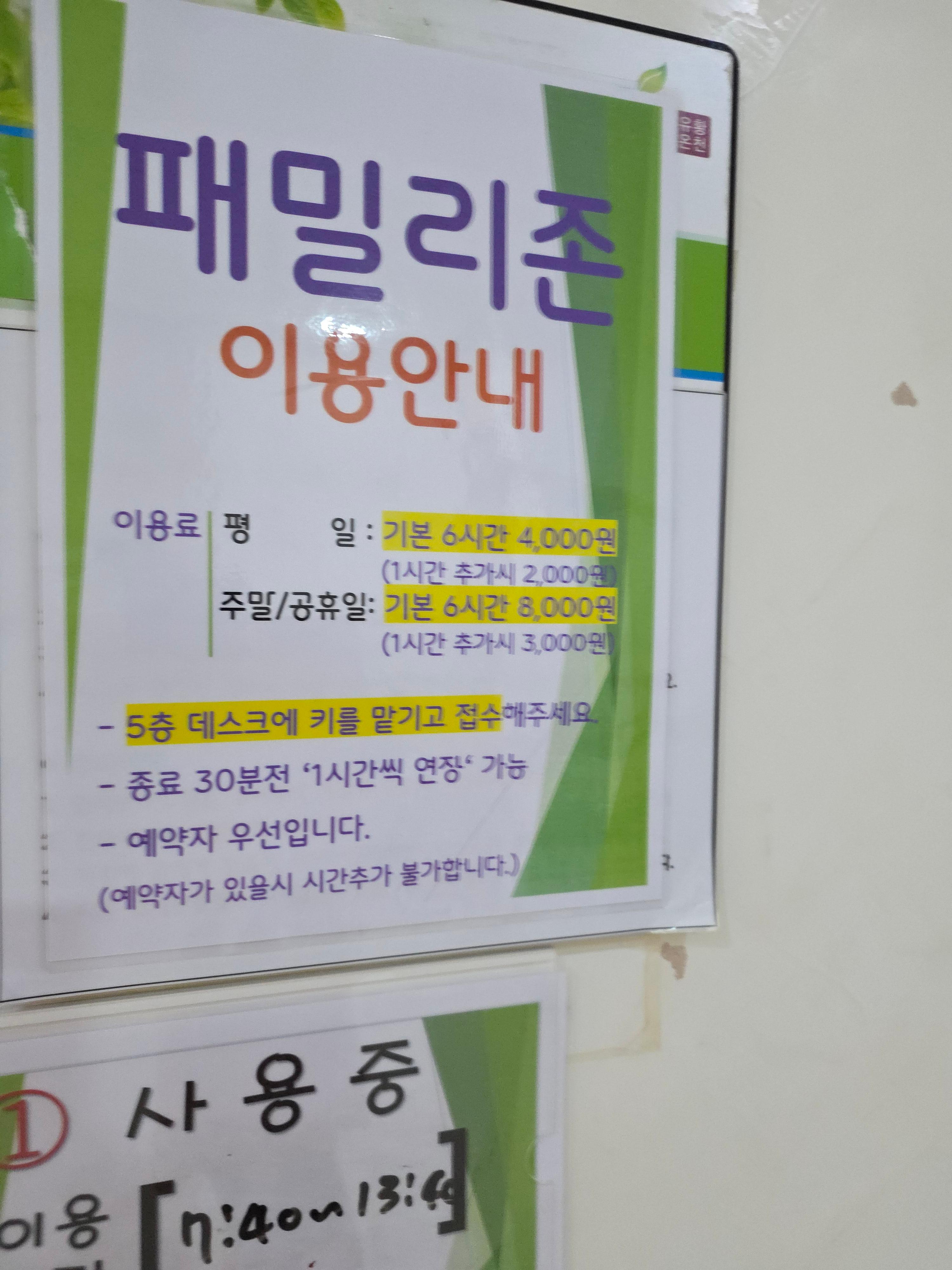 - 이용료: 기본 6시간 8,000원 (주말 기준) / 평일 4,000원