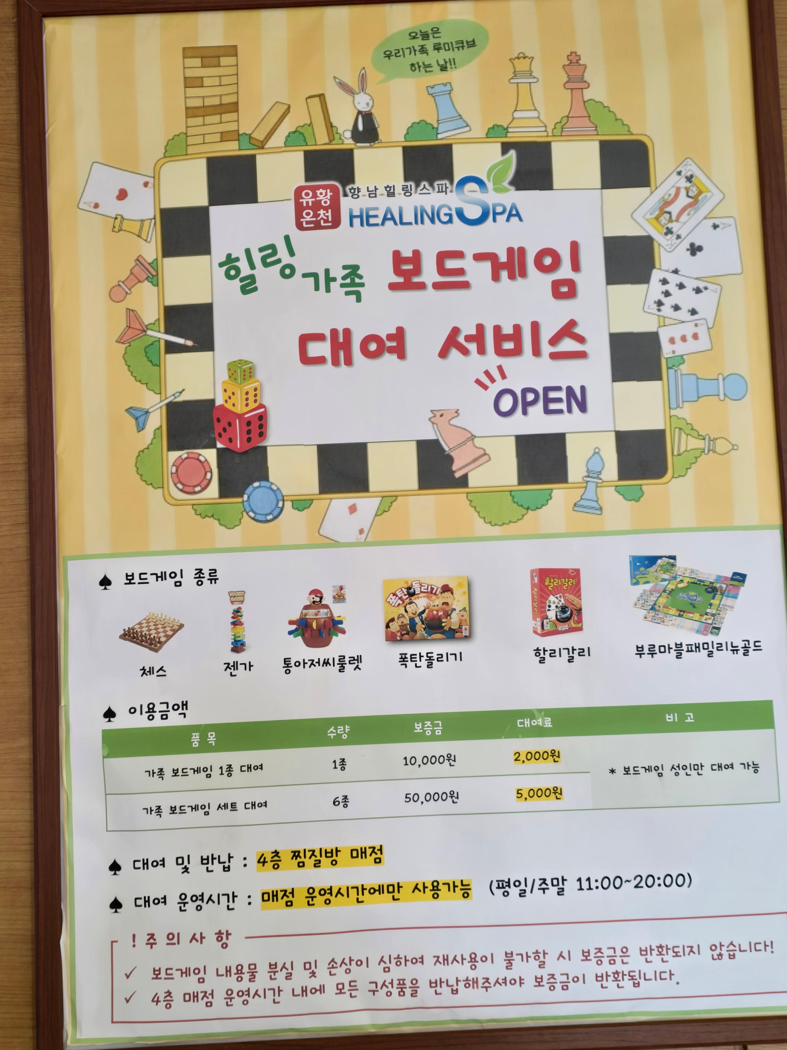 - 보드게임 대여: 요즘 핫한 루미큐브, 할리갈리 다 있어요. (가족 대항전 한 판!)