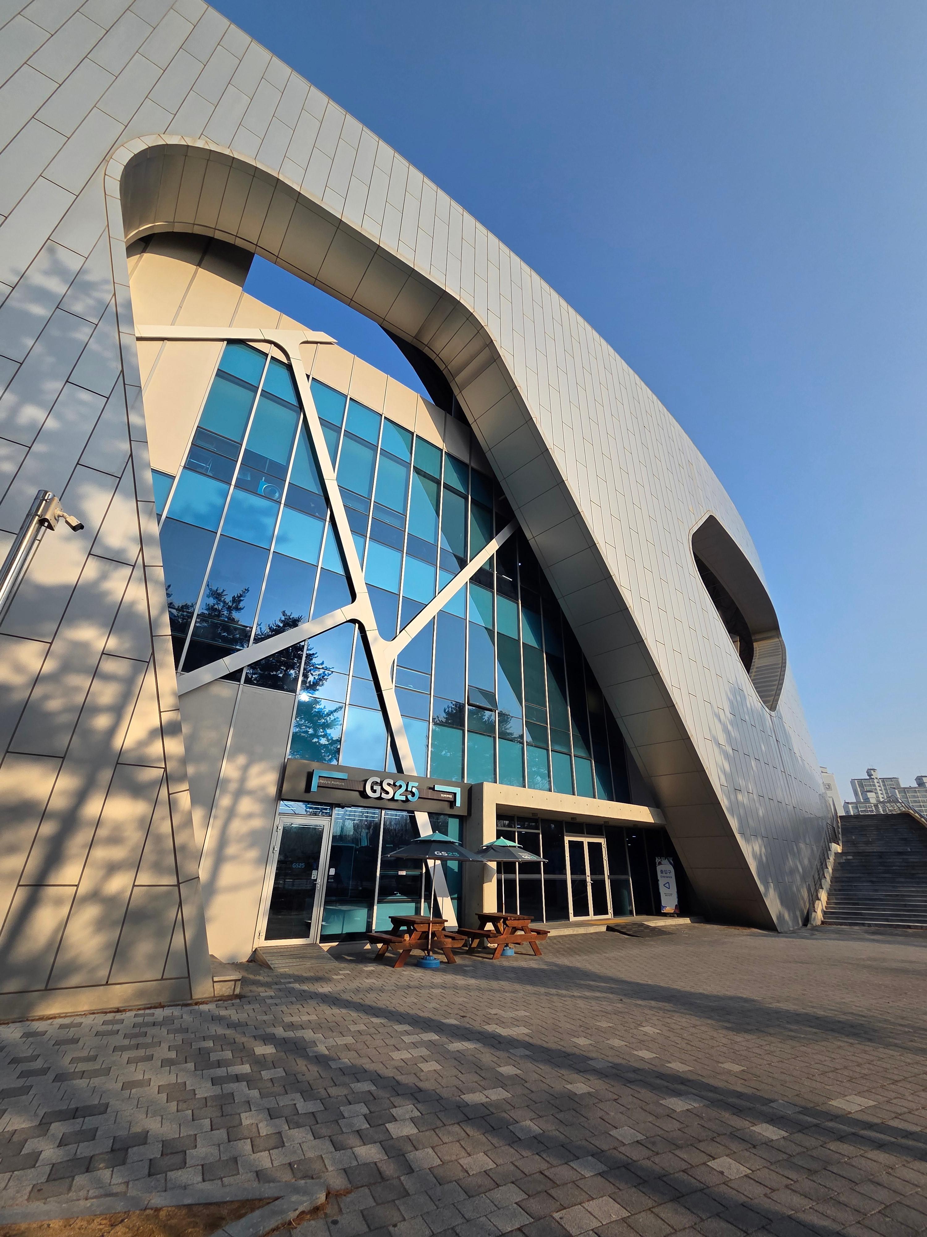 곡선형 디자인이 마치 거대한 배나 파도를 연상시키는 멋진 건축물이에요.