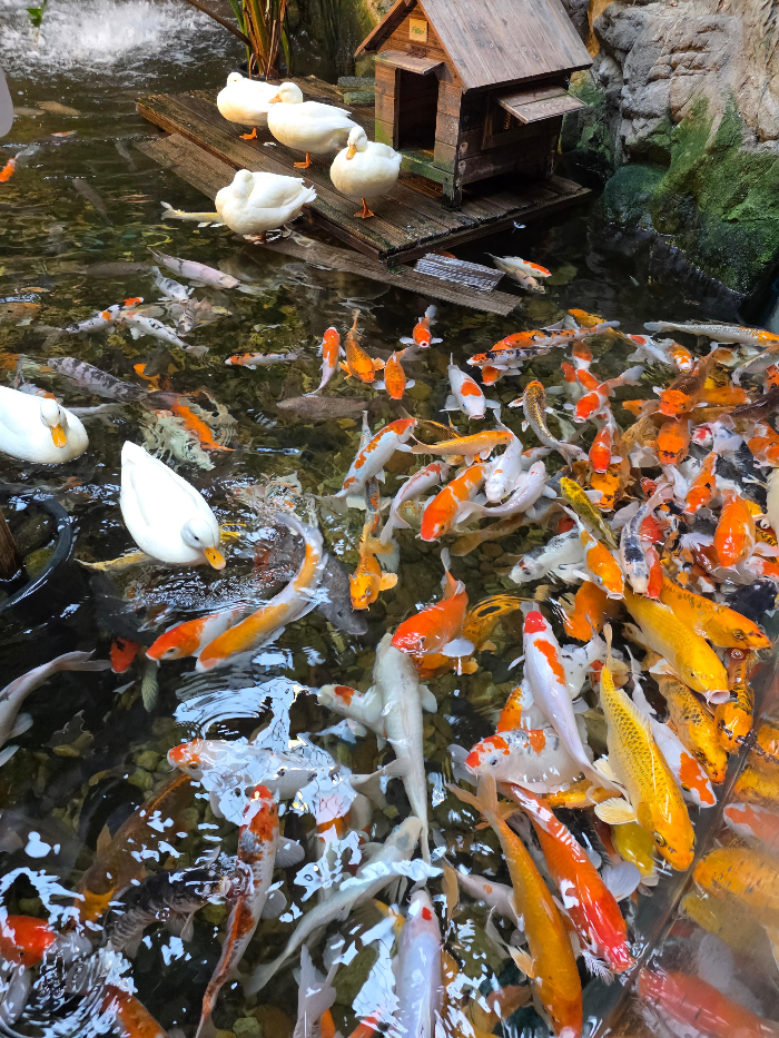 이곳에서는 오리들과 잉어들이 평화롭게 어울려 노는 모습을 볼 수 있었어요.