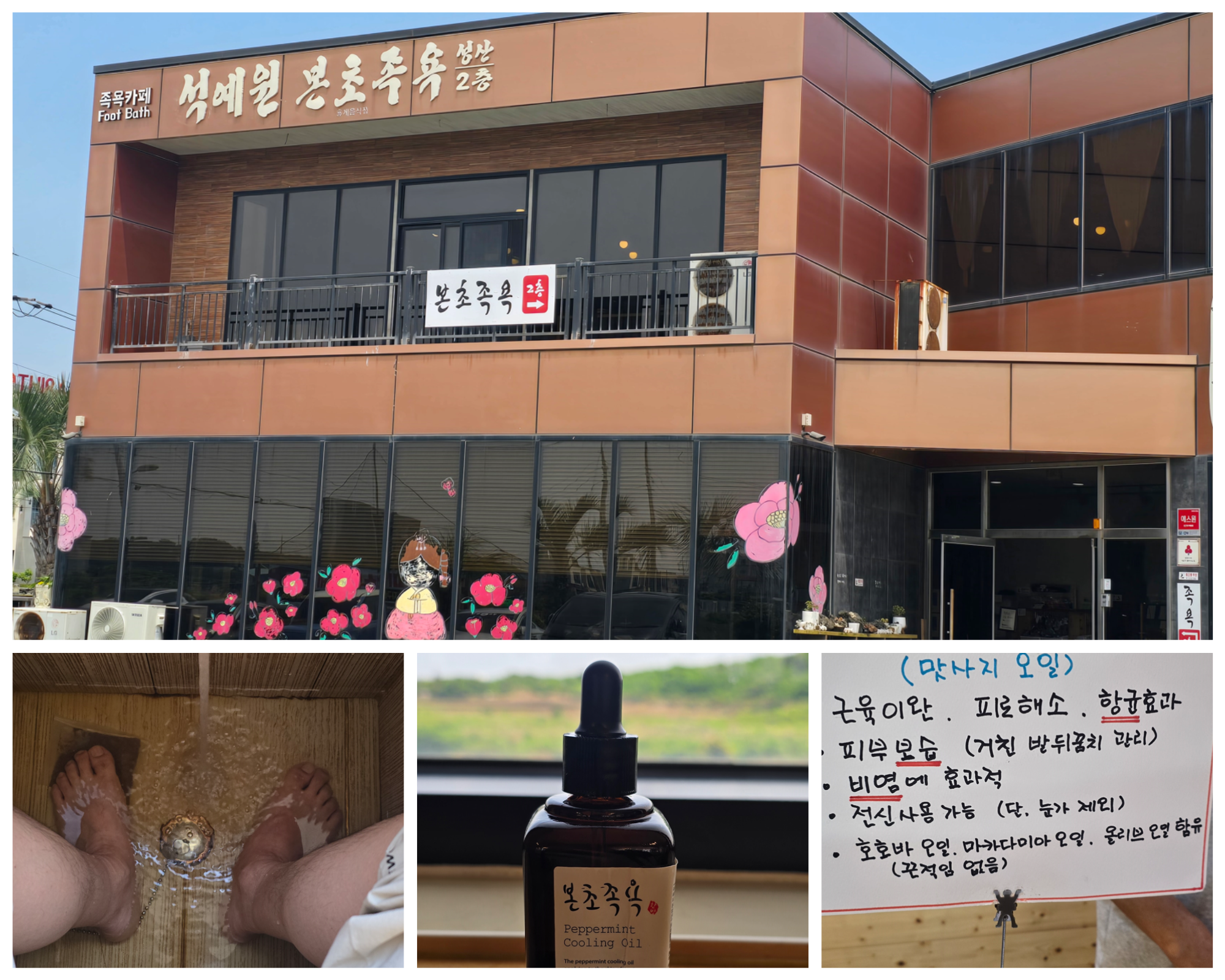 소금 + 오일 + 파스로 구성된 족욕탕에서