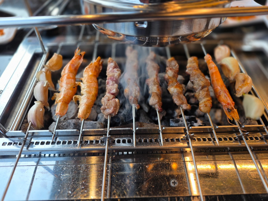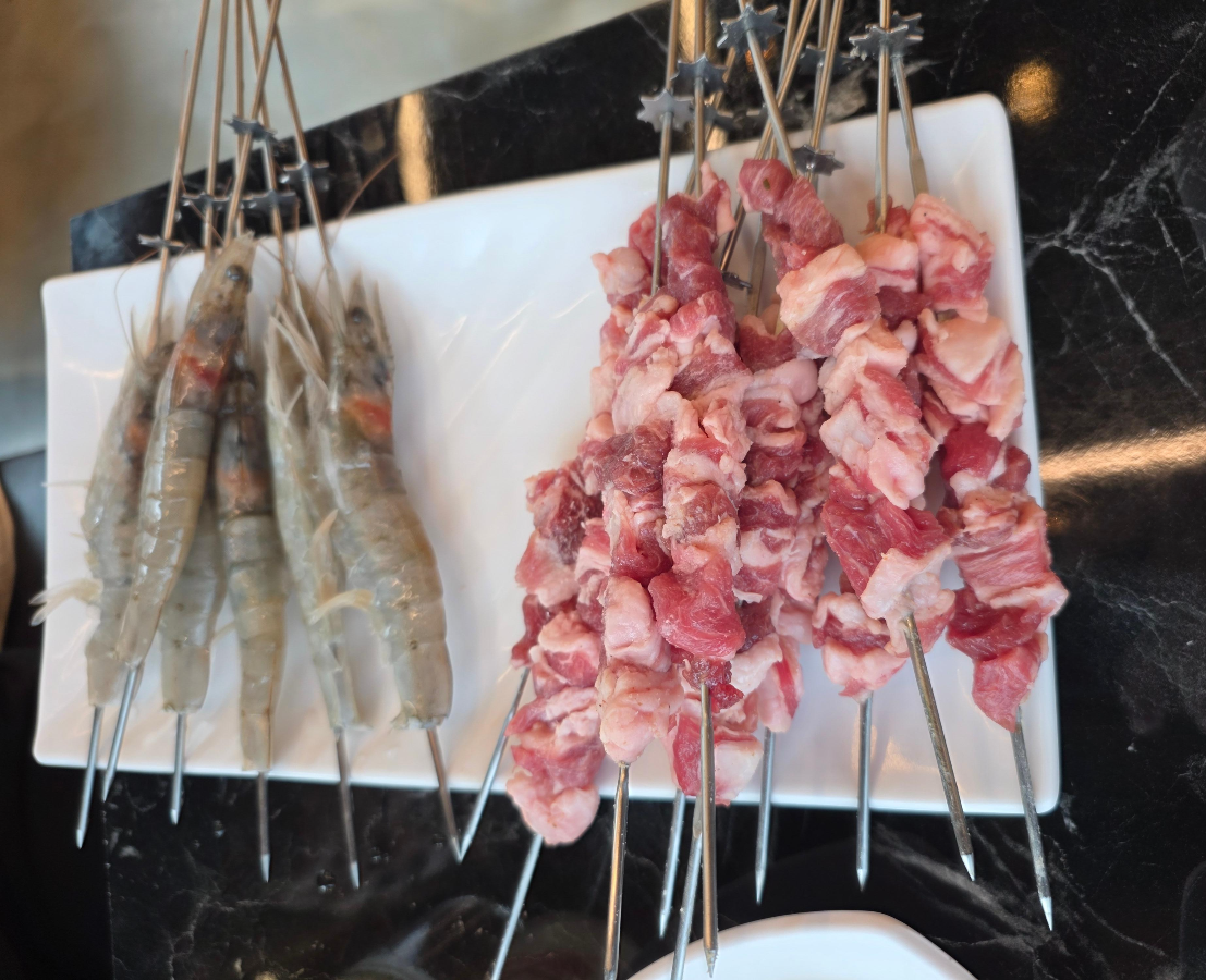 고기만 먹기 아쉬울 때 꼭 추가해야 할 메뉴가 바로 새우꼬치입니다.