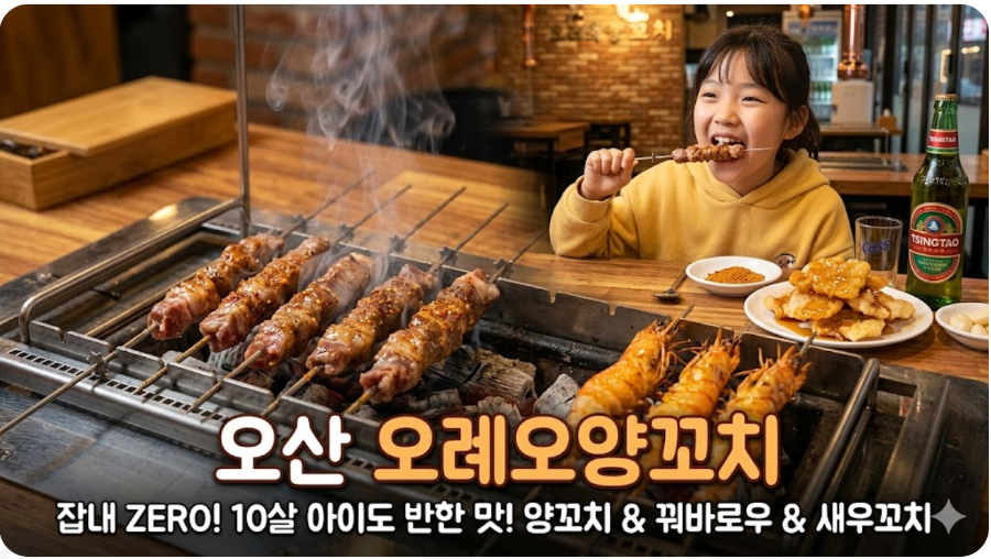저도 이번에 10살 아이와 함께 오산에 위치한 **'오레오양꼬치'**에 다녀왔는데,