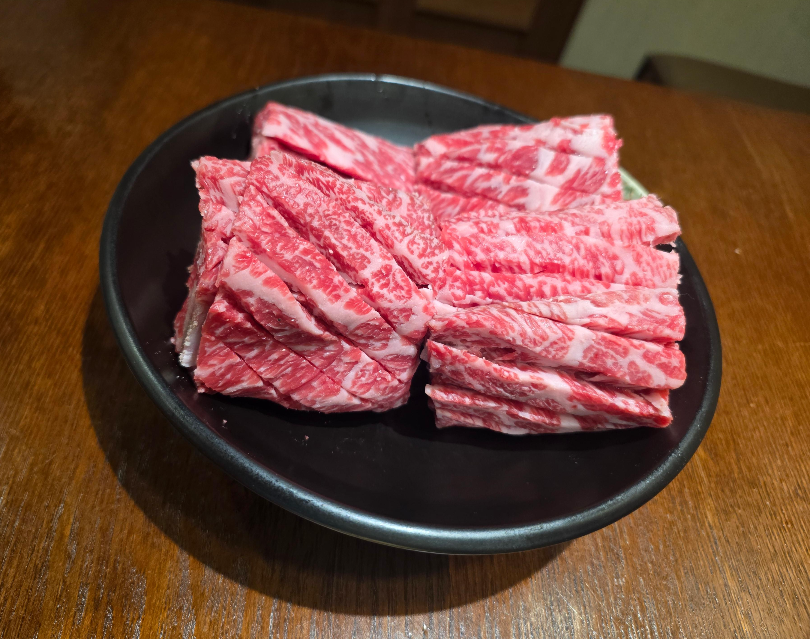 처음으로 불판에 올린 건 한우 생갈비였어요.