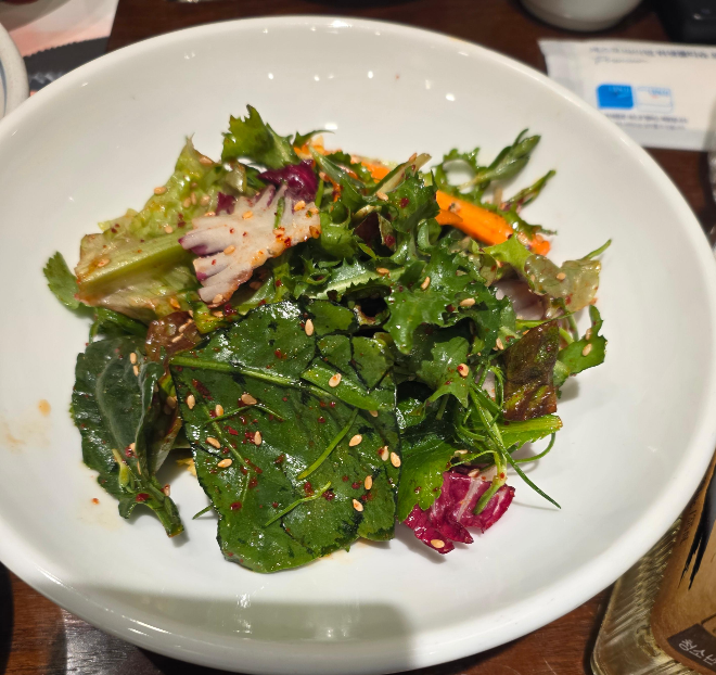 테이블 위에 빈틈없이 채워진 반찬들을 보니, 고기가 나오기도 전에 이미 배가 부른 느낌이었어요.