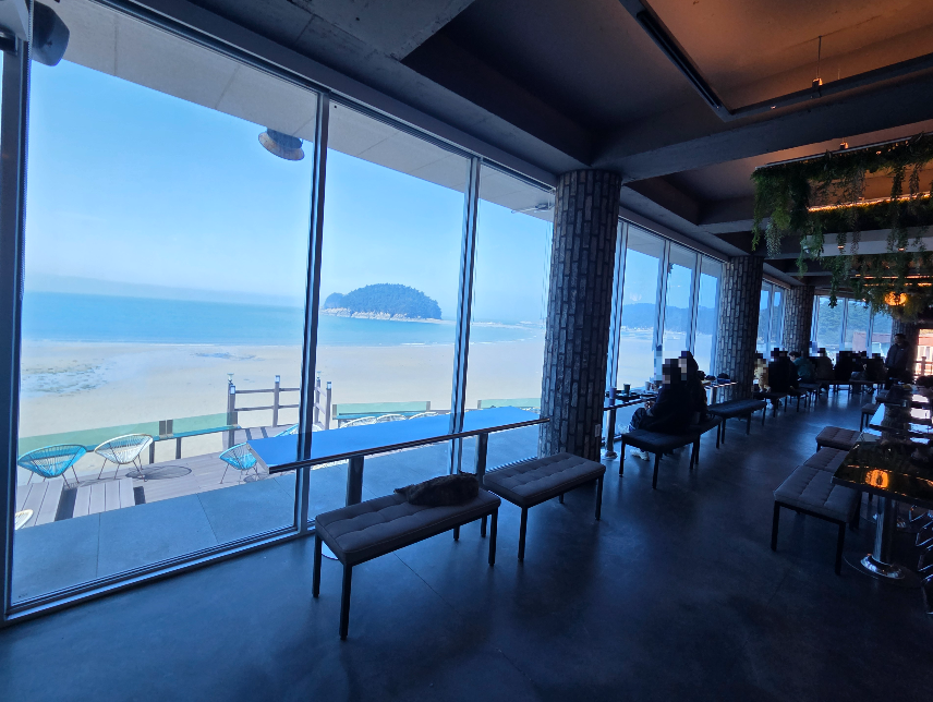 - 탁 트인 통창: 시야를 가리는 것 없이 만리포 앞바다가 시원하게 펼쳐집니다.