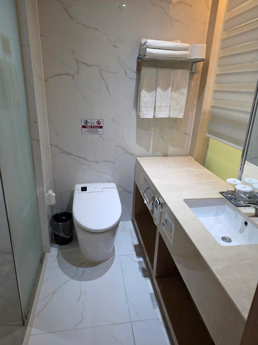 욕실도 깔끔하게 관리되고 있어서 세 식구가 이용하기에 부족함이 없었습니다.